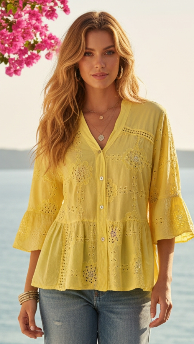 Blouse Broderie Anglaise et Sequins Jaune MIMI