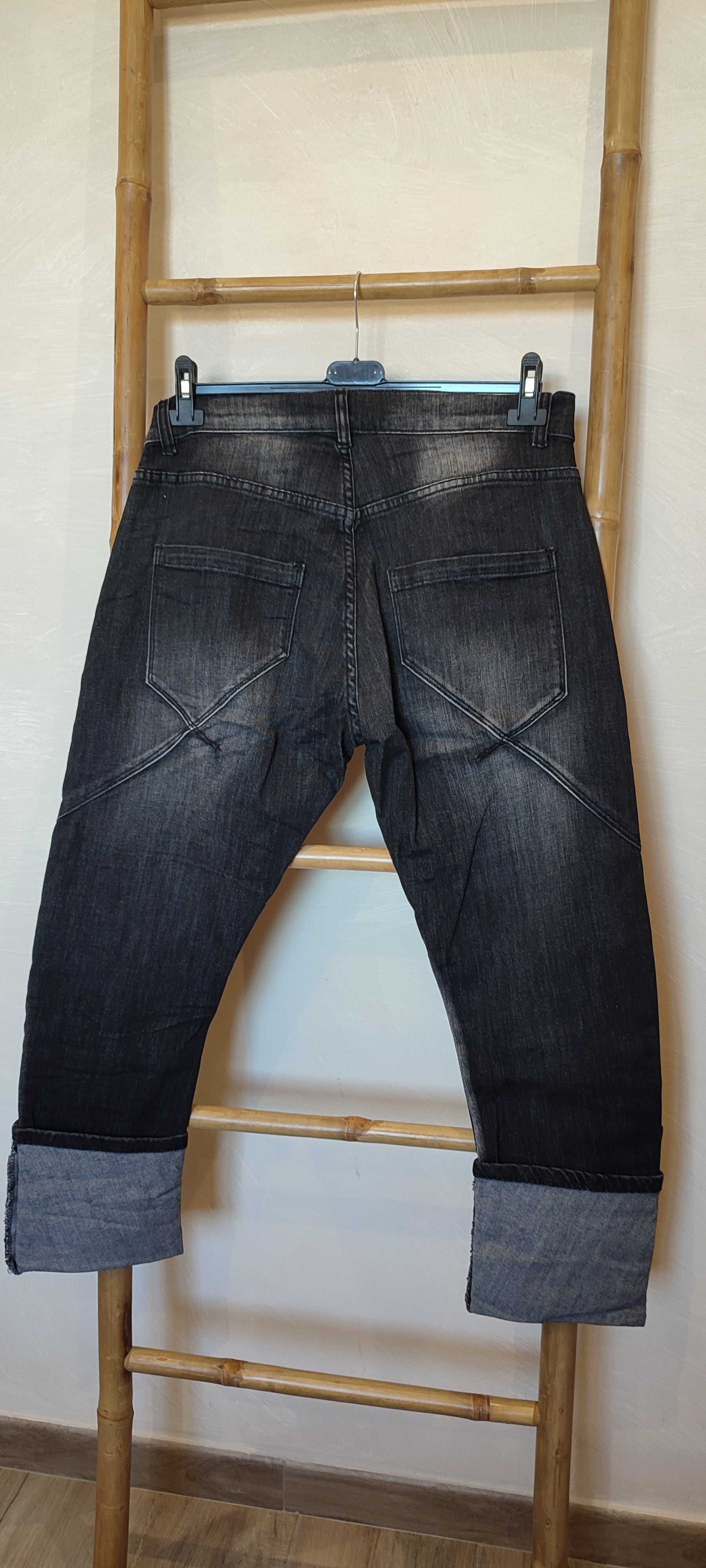 - Jean noir à empiècements coeurs simili cuir bohème chic
